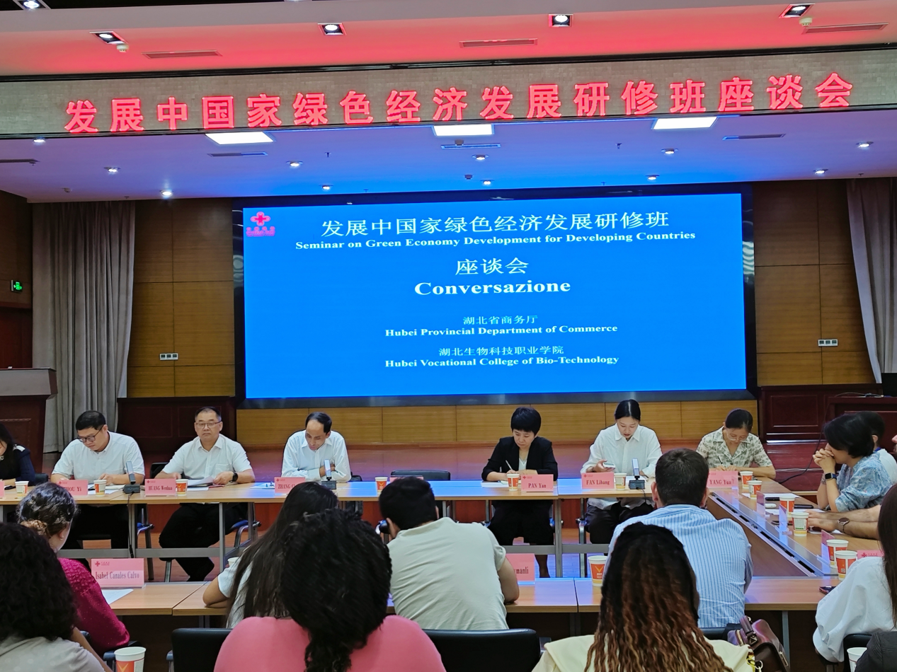 2024年9月12日,发展中国家绿色经济发展研修班座谈会暨援外培训班学员座谈会在湖北省商务厅举行。商务部驻武汉特派员张楚虎参加会议并致辞,省商务厅外经管理处处长黄文华主持会议。来自阿塞拜疆、古巴、苏里南、尼日利亚、巴勒斯坦、南非、塔吉克斯坦7个国家36名政府官员参加培训交流。永业行投资金融产业链研发中心执行总经理范丽邦受邀作经验分享。